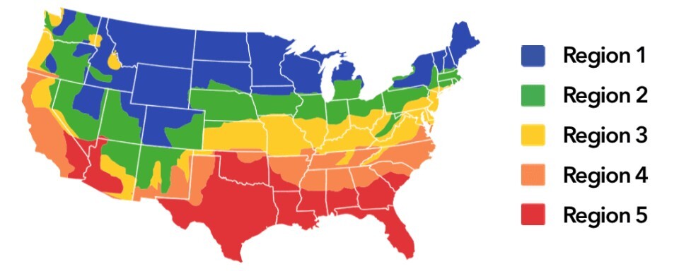 Refer to the color-coded map above to identify the climate zone your home is located in.
